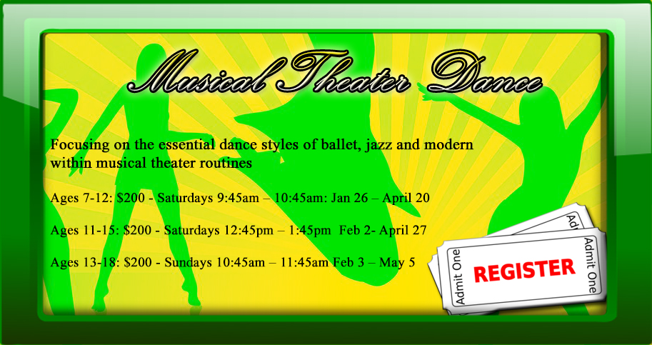 Each week, students will spend half the class developing vocal and dance technique and the other half rehearsing two dynamic performance numbers: